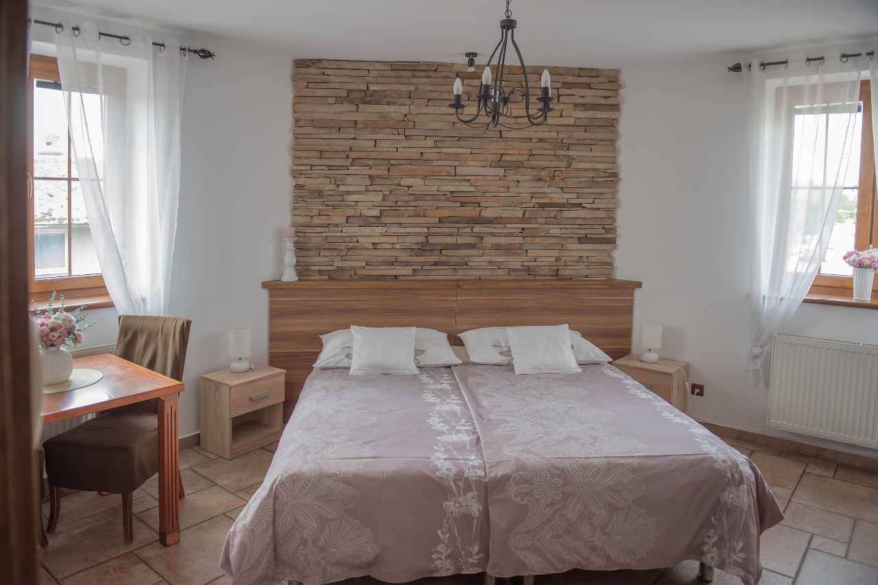 Dvoulůžkový pokoj - oddělené či manželské postele jsou vybaveny vysoce kvalitními matracemi a lůžkovinami. Koupelna se sprchovým koutem a WC, TV, přípojka na Internet - Wi-fi a vybavená kuchyňka s lednicí a vařičem.
