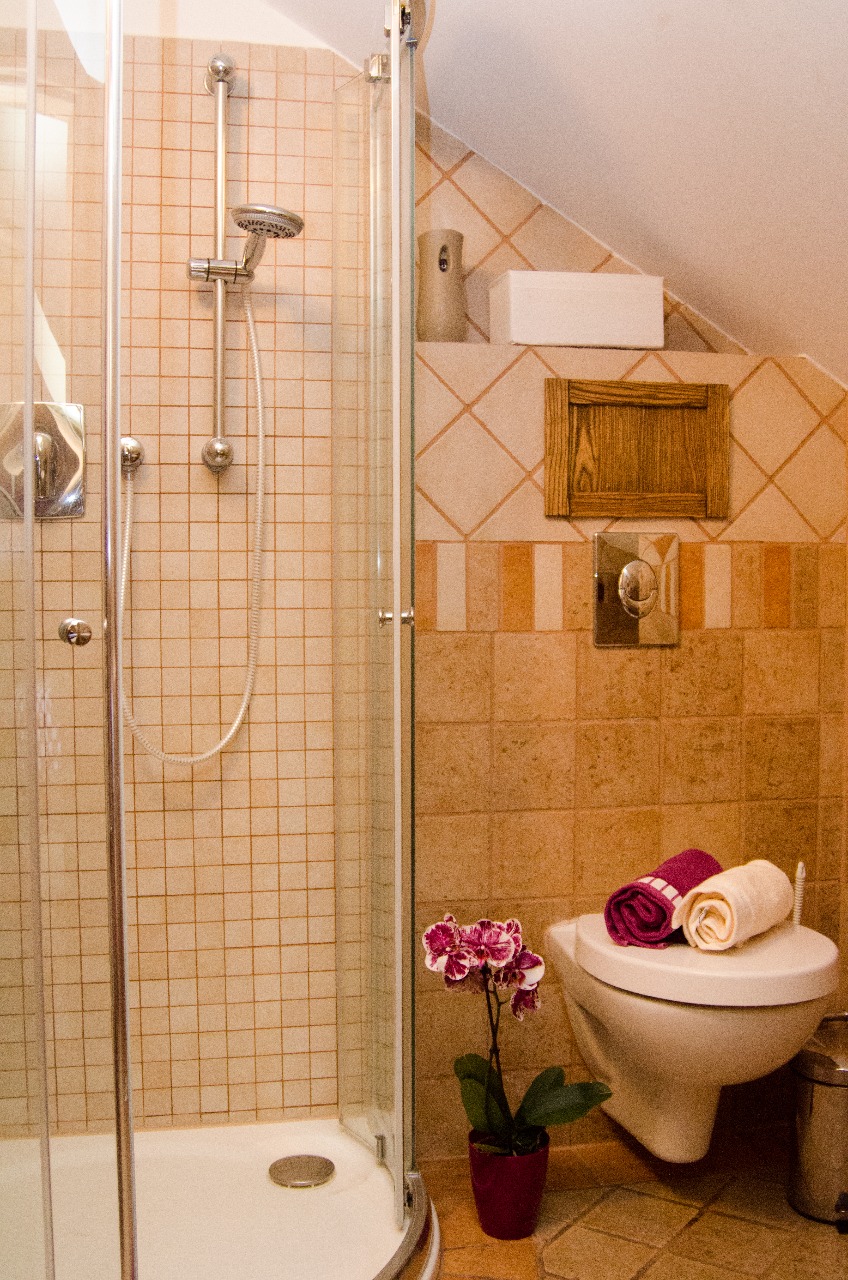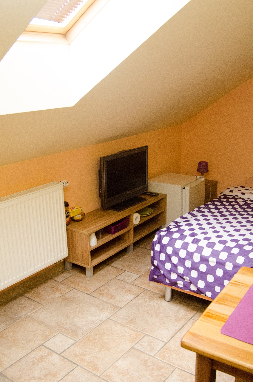 Jednolůžkový podkrovní pokoj - postel je vybavena vysoce kvalitními matracemi a lůžkovinami. Koupelna se sprchovým koutem a WC, TV, přípojka na Internet - Wi-fi, lednice, rychlovarná konvice.
